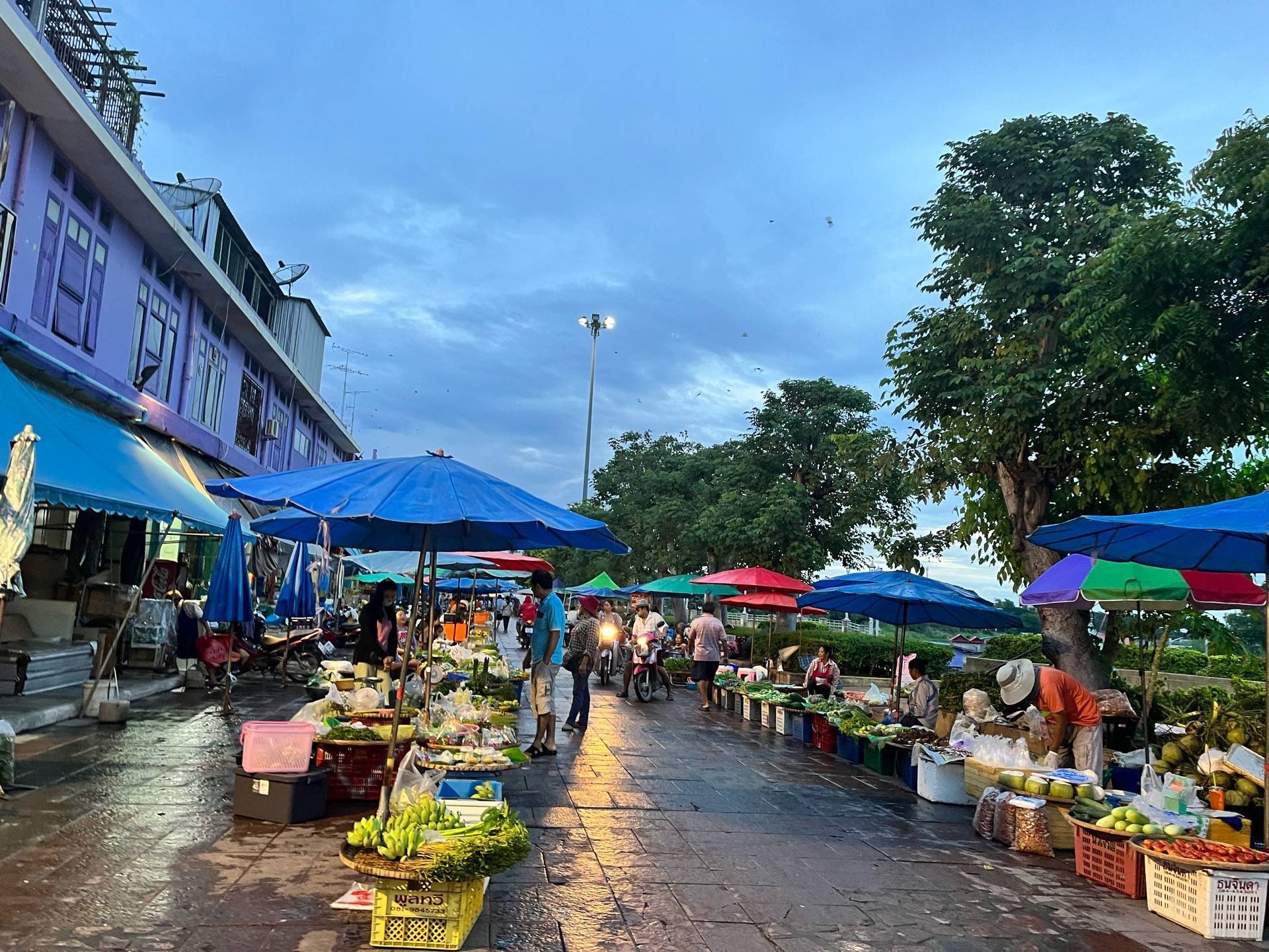 ตลาดช่วงเช้าเริ่มตั้งแต่ประมาณตีห้า ช่วงเย็นร้านเยอะๆ ตั้งแต่ห้าโมงเย็น ตักบาตรริมน้ำ เริ่มประมาณ 7 โมงเช้า